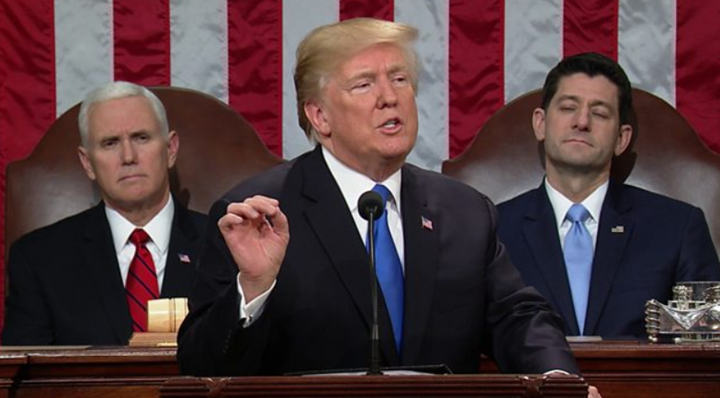 President Donald Trump delivers his first state-of-the-union address. Several key highlights touch on economic issues from fiscal stimulus and trade protectionism to infrastructure, immigration, and social security. The hefty Trump tax cuts provide tremendous relief for the middle-class Americans and small businesses. About 3 million American workers receive tax incentives primarily due to this legislative win for the Trump administration and Republican-driven Congress.